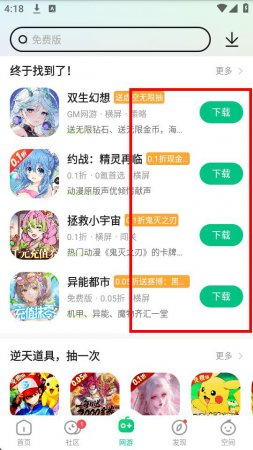 2、在网游页面中,浏览找到想下载的游戏,比如双生幻想,点击其对应的下载按钮。