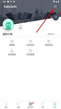 2、在个人界面的右上角,点击设置齿轮图标,进入设置页面。