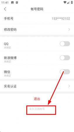 4、进入帐号密码页面,下滑至底部,点击永久注销帐号,按照提示完成后续操作即可注销账号。