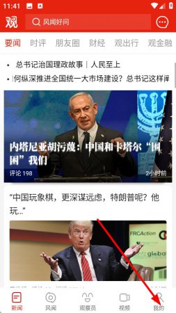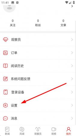 1、打开观察者网app,在首页点击底部导航栏最右侧的我的选项。