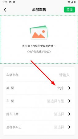 4、在添加车辆页面,点击车辆类型选项,进入选择车型列表。
