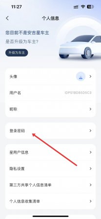 3、在个人信息界面中,找到并点击登录密码选项,进入更改密码页面。