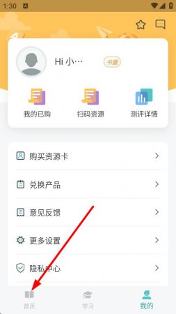 1、打开外研阅读app,点击底部导航栏中的首页选项,进入首页界面。