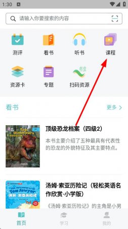 2、在首页界面里,找到并点击课程图标,进入课程选择页面。
