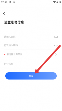 3、进入设置账号信息页面,输入密码、选择业务类型等信息后,点击确认完成船讯网账号注册。
