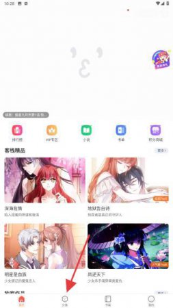 1、打开漫客栈APP,进入到首页内,点击页面导航栏分类的图标。