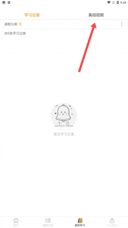 3、进入我的学习界面,顶部有学习记录和离线视频两个标签,方便管理学习轨迹,查看离线资源。