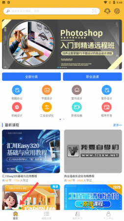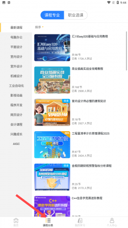 2、点击课程分类,呈现丰富课程,覆盖电脑办公、平面设计等多领域,如汇川Easy320基础与应用教程等课程,可按需筛选学习内容。