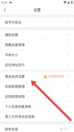 2、在个人设置的页面中,点击黄金会员设置的选项,需要跳转至会员的权益相关页面。