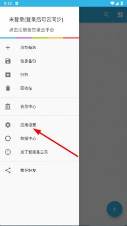 1、打开智能备忘录软件,点击界面左上角三条横线图标,唤出侧边隐藏菜单。