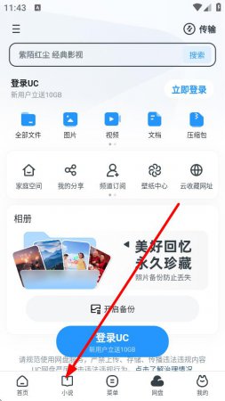 打开UC浏览器,点击底部导航栏中的小说选项,进入小说界面。