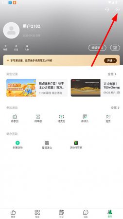 2、在个人页面的右上角,点击设置图标,进入设置界面。