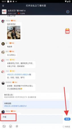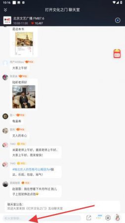2、进入文化之门的聊天室,点击输入框激活输入法。