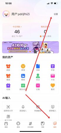 1、打开搜狗输入法,进入个人中心页面,点击右上角的设置。