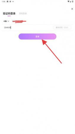 3、将收到的验证码填入其中,再点击登录的按钮。
