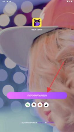 1、打开嗨秀直播APP,点击正下方手机号或账号密码登录。
