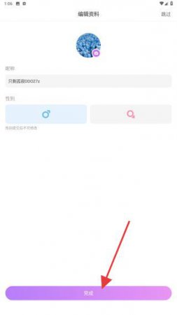 4、最后一步,设置昵称、性别以及头像,再点击完成的按钮即可。