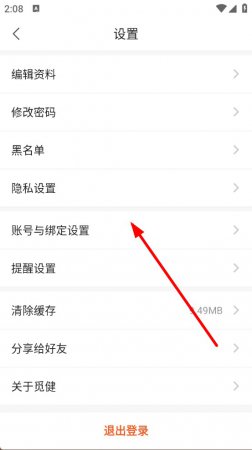 2、进入设置页面后,找到并点击账号与绑定设置选项。