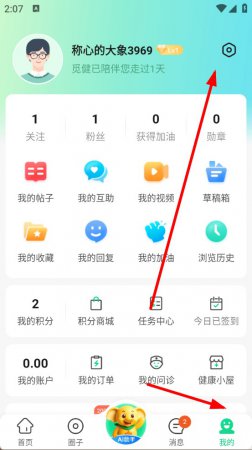 1、打开觅健APP,点击我的,点击右上角的设置图标。