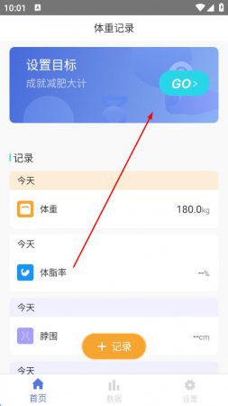 1、打开体重记录打卡应用,在首页点击“设置目标区域的GO按钮。