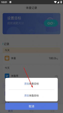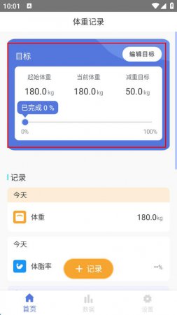 4、成功添加目标体重,之后在首页能查看目标体重相关的进度情况。