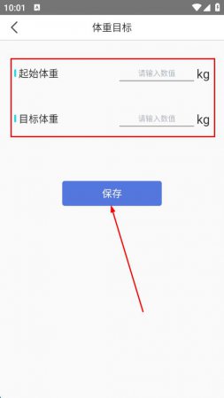 3、在起始体重和目标体重输入框中输入对应的数值,点击保存按钮。