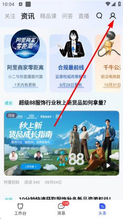 1、打开千牛APP,点击底部头条选项进入头条界面。
