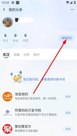 3、在我的头条页面中,点击编辑资料按钮。