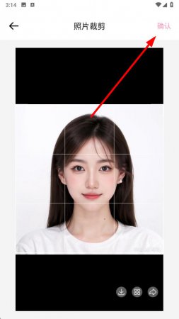 4、调整好裁剪范围后,点击界面右上角的确认按钮,完成照片尺寸的修改。