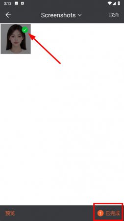 2、进入照片选择界面,从相册中选取需要修改尺寸的证件照,点击已完成确认选择。