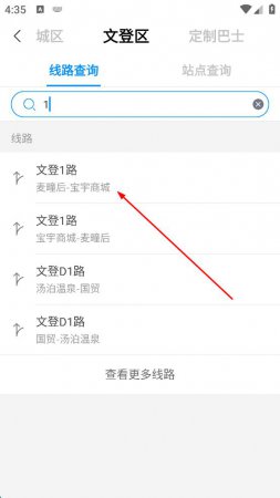 3、在实时公交页面,选择文登区,进入文登区公交查询页面,在搜索框输入公交线路相关信息,比如输入1,查找对应的公交线路。