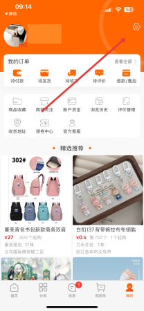 1、进入APP点击底部导航栏中我的界面,点击界面右上角设置图标进入设置页面。