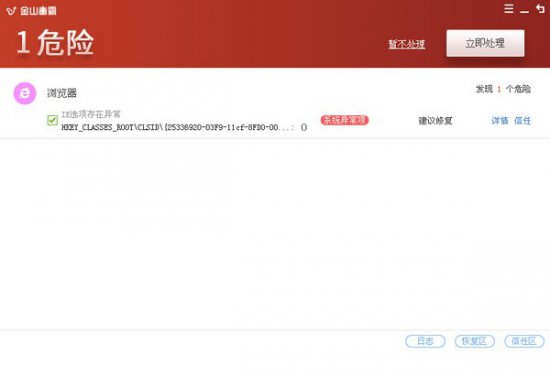 金山毒霸在一键云查杀中集成了系统修复引擎,可以快速检测和修复IE组件异常,让IE恢复完好如初,彻底解决IE打开网页时变成下载的难题。