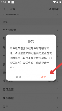 4、在警告的确认框中,需要点击红色确定的按钮,完成缓存清除。