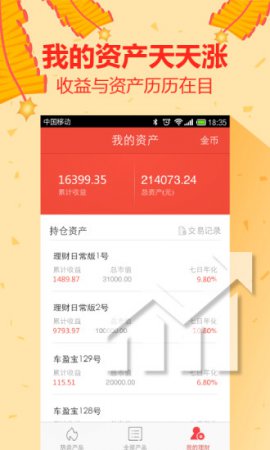 理财计算器一键知收益;精选产品轻松购买;帐户收益实时呈现。