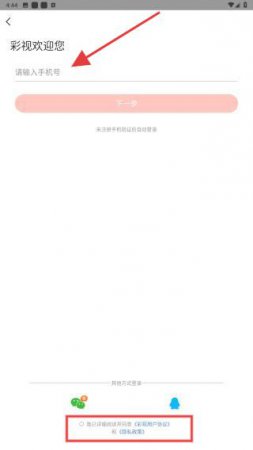 2、在输入框内输入手机号登录,并勾选注册用户协议,再点击下一步。