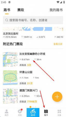 2、点路书,可以搜索路书或看热门赛段选路线。