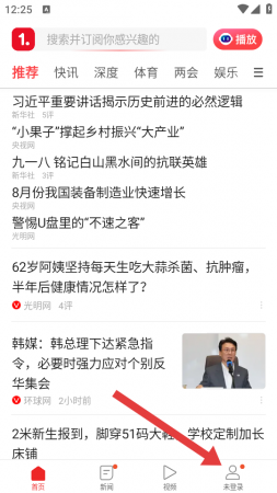 1、打开一点资讯APP,需要点击底部未登录,进入个人的界面。