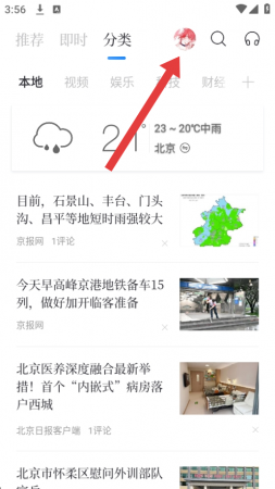1、打开百度新闻的APP软件,需要点击首页右上角的头像图标,进入个人中心页面。
