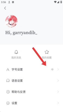 2、在个人中心的页面,点击下面字号设置的选项,进入字体大小的调整界面。
