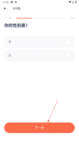 3、按照测评问卷的引导,依次回答问题,然后点击下一步。