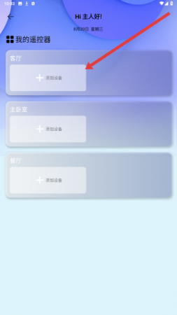 3、在我的遥控器页面,可以点击客厅板块的添加设备按钮,开始添加客厅的智能设备。