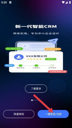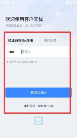 1、打开客户无忧,点击界面下方一键登录/注册按钮。