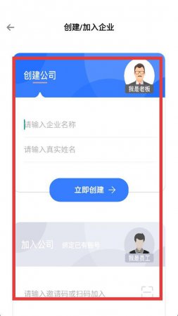 4、验证后进入创建/加入企业页,根据需求填写信息。