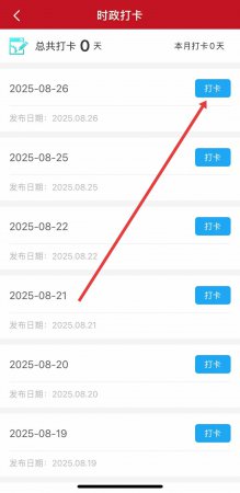 2、进入时政打卡页面,找到对应的日期,点击打卡键。