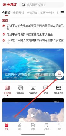 1、打开半月谈APP,找到右侧的悬浮按键时政测试,点击进入。