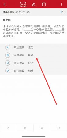 3、进入时政小测验页面,完成每日测验,即可成功打卡。