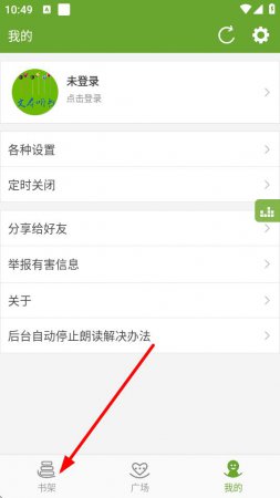 1、打开txt文本听书应用,点击底部导航栏中的书架进入书架页面。