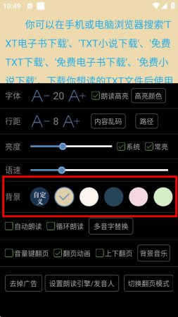 TXT有声读物应用程序可以直接阅读和处理TXT文本文档,操作方便。更好的是,该软件是完全免费的,可以在没有互联网连接的情况下使用,即使没有互联网连接,你也可以享受听书的乐趣。它的音质清晰,阅读过程非常流畅,就像专业播音员在耳边低语一样。您还可以自由调整字体大小、颜色、背景和屏幕亮度,选择不同的阅读引擎和扬声器,并设置节奏和背景音乐。