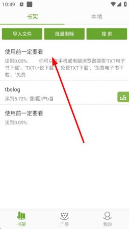 2、在书架页面里,点击要阅读的txt文档,进入文档阅读界面。